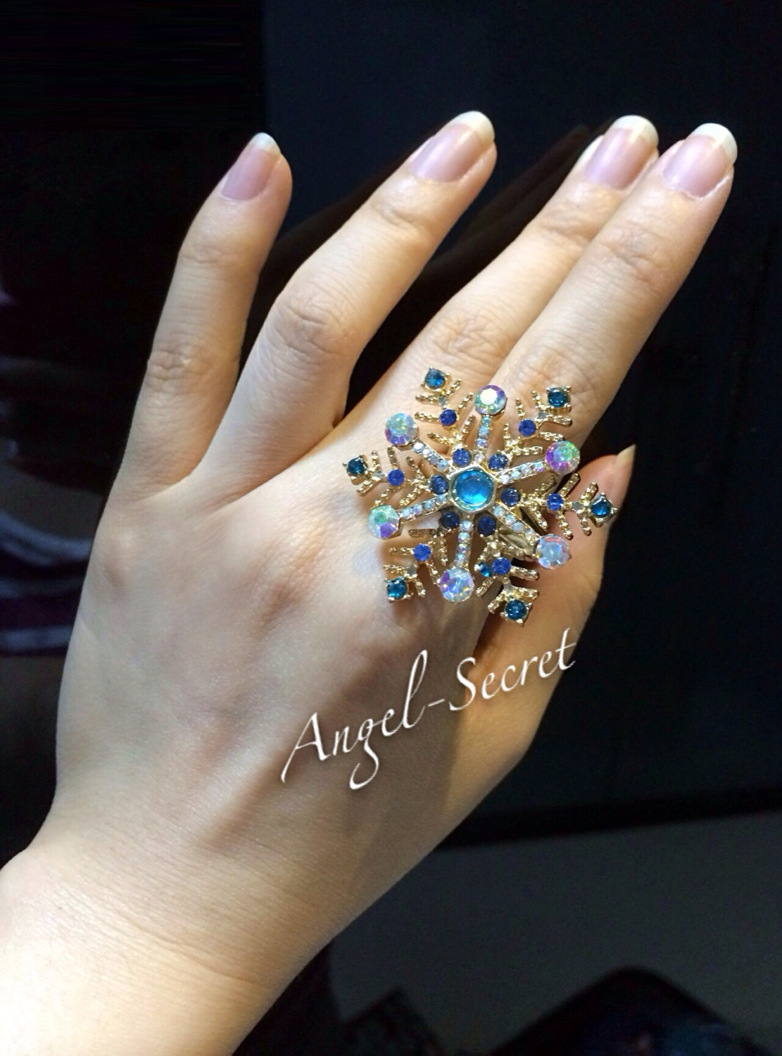 RING F Elsa Costume Snow Queen Anime Cosplay ring for frozen dress silver blue snowflake