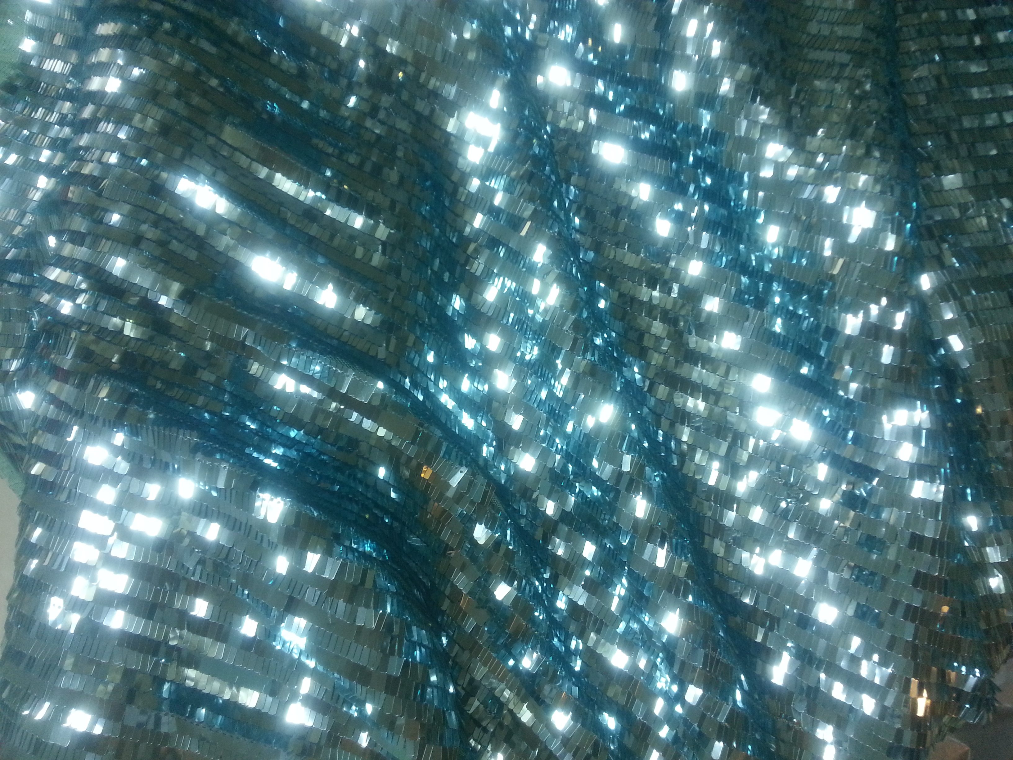 1 yard Sequin Fabric, Sparkly and Shiny Rectangular Sequins Sewed on Polyester Mesh for Dress Costumes, it is silver with very pale blue