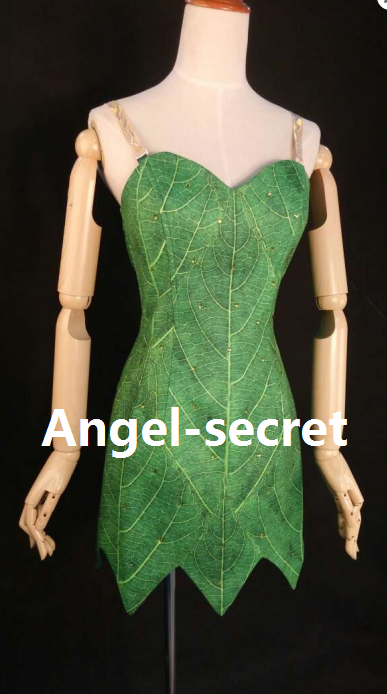 P156C Tinkerbell leaf print dress green rhinestones throughout