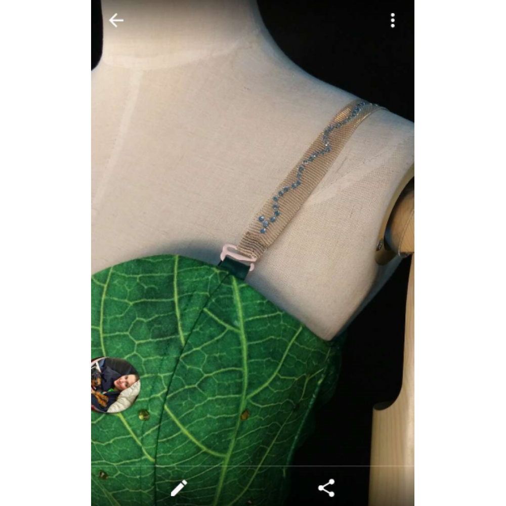 P156C Tinkerbell leaf print dress green rhinestones throughout the dress and sparkly straps