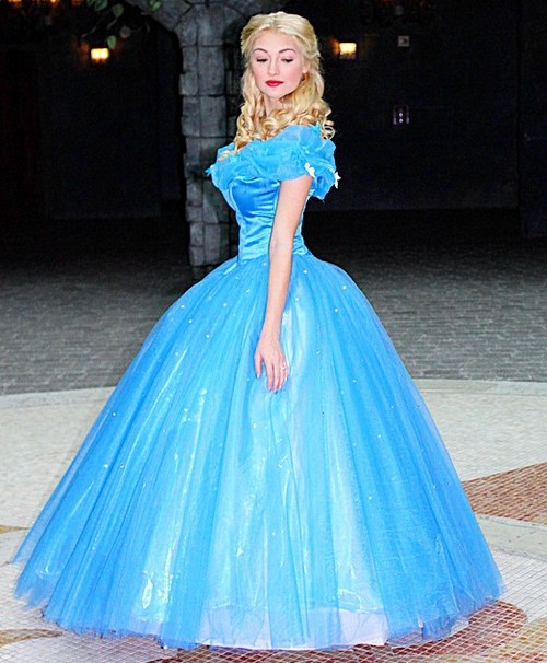 P143 Movies Cosplay Costume Cinderella dress princess iridescent WITHOUT PETTICOAT