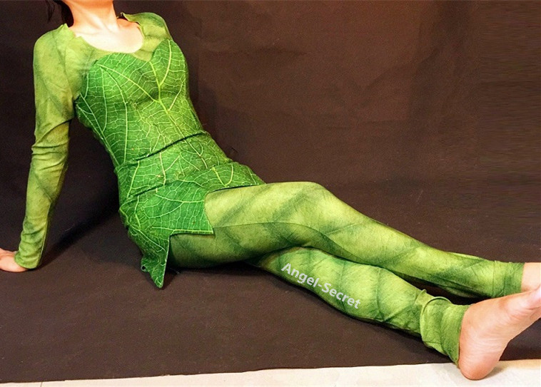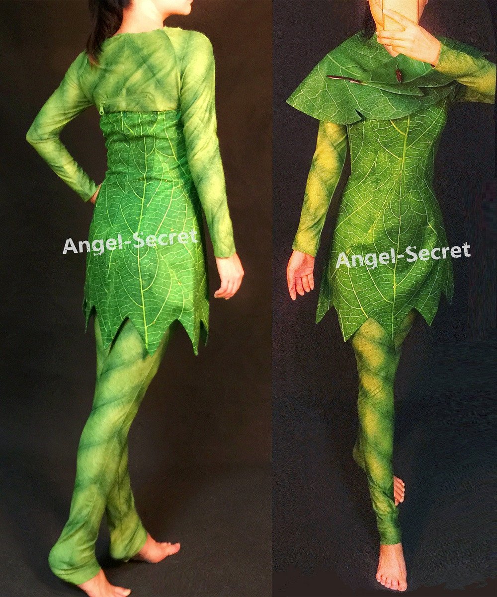 P456 Green Tinkerbell flannel leaf print dress Costume custom made women adult