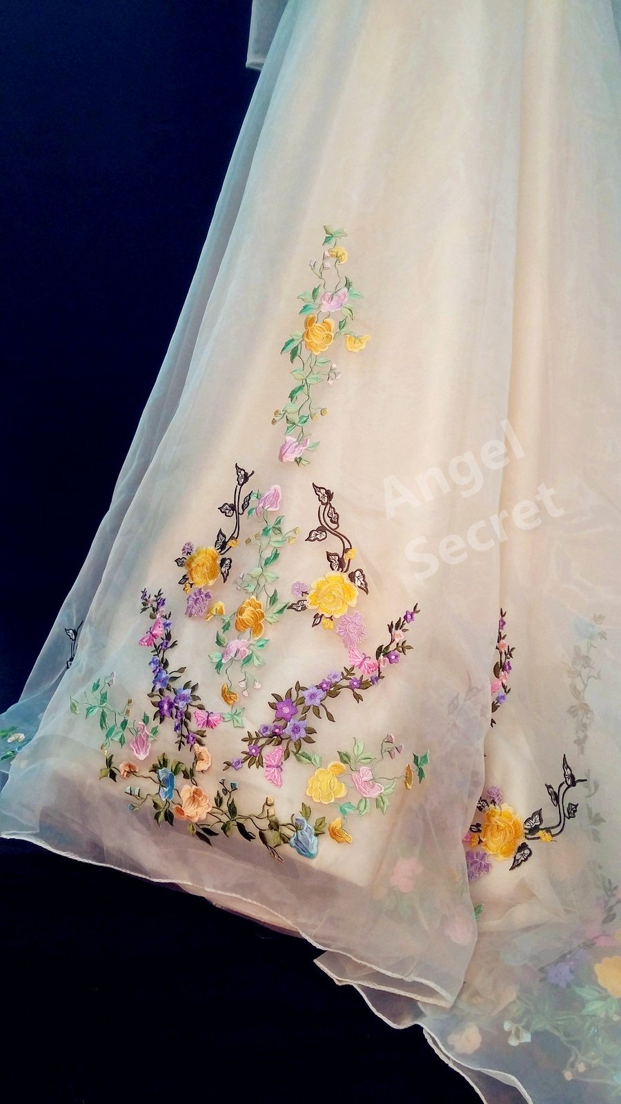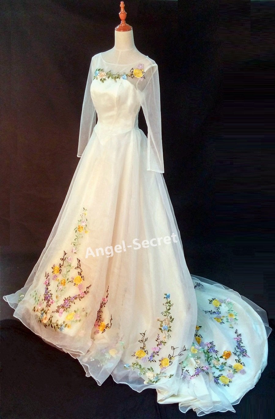 P305 Movie Costume Cinderella 2015 ivory gown wedding bridal 100cm long train