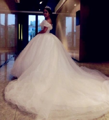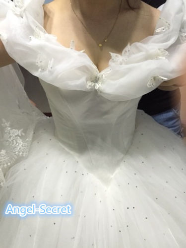P303 Movie Costume Cinderella 2015 Ella white dress wedding bridal long train