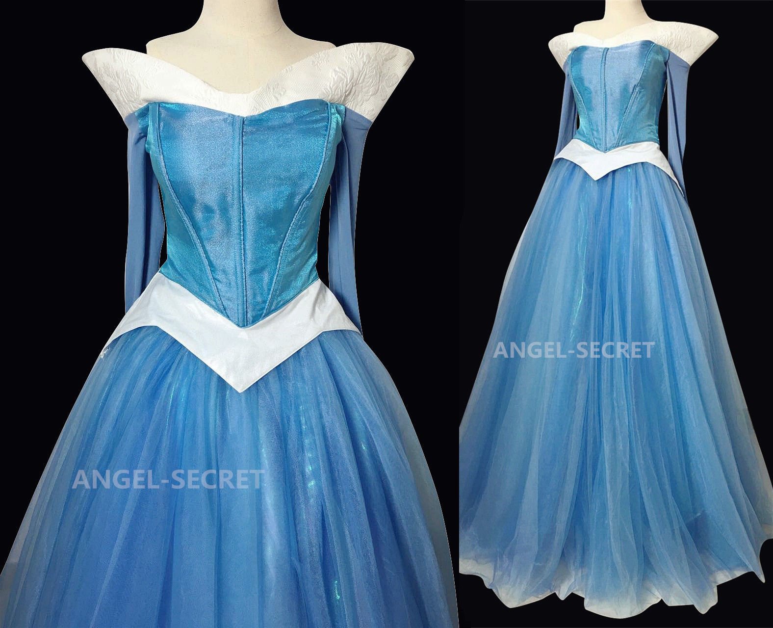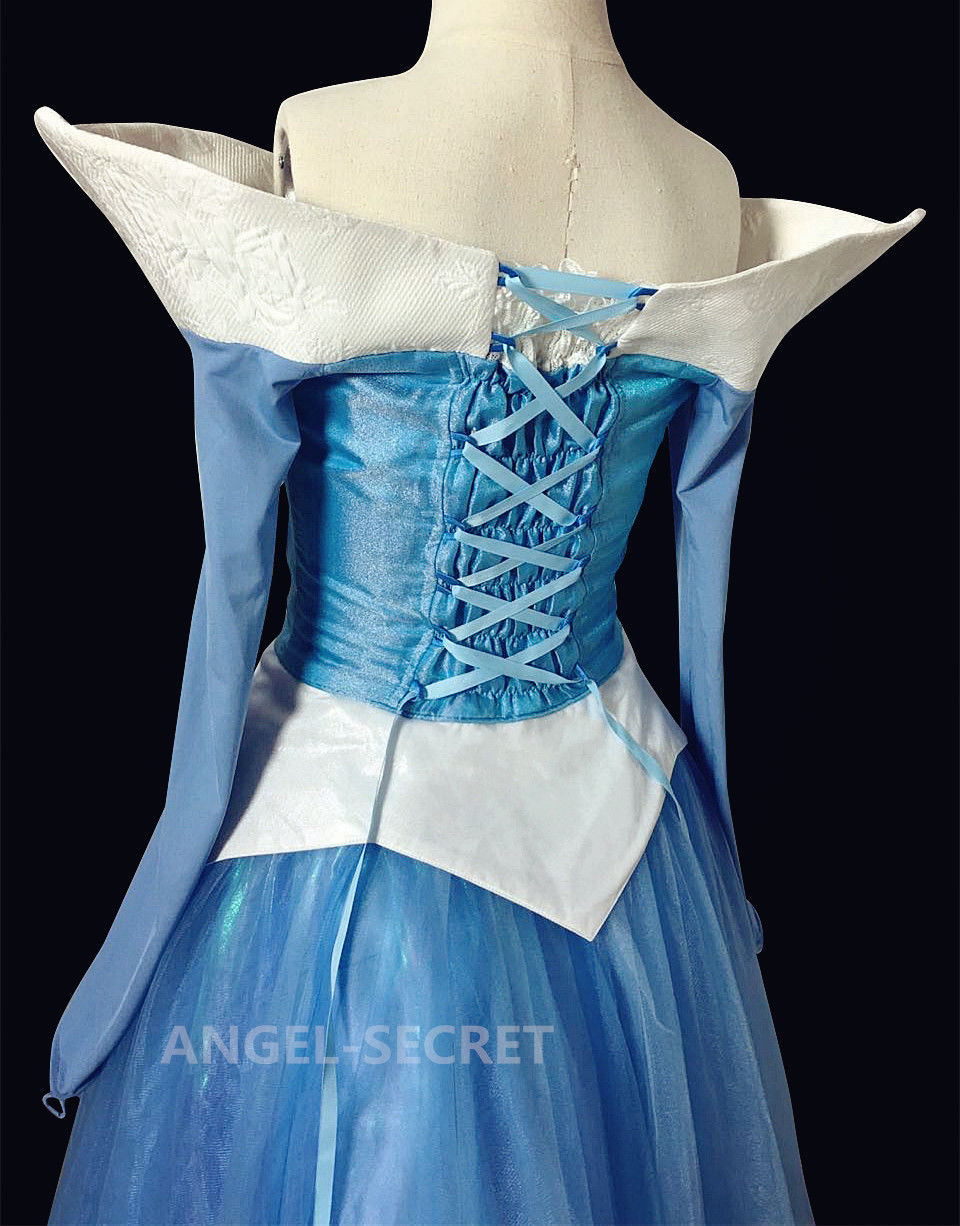 P940 COSPLAY iridescent blue Dress Princess sleeping beauty Costume Aurora women