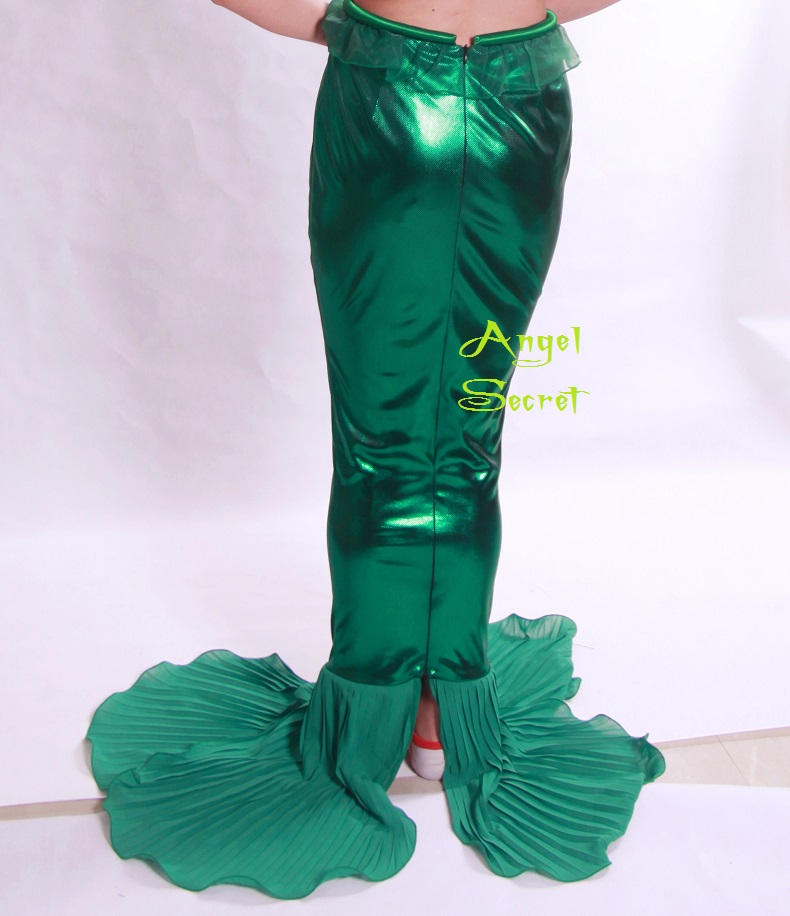 P135 High Waist Green Metallic Mermaid Skirt Fish tail Costume STRETCH walkable