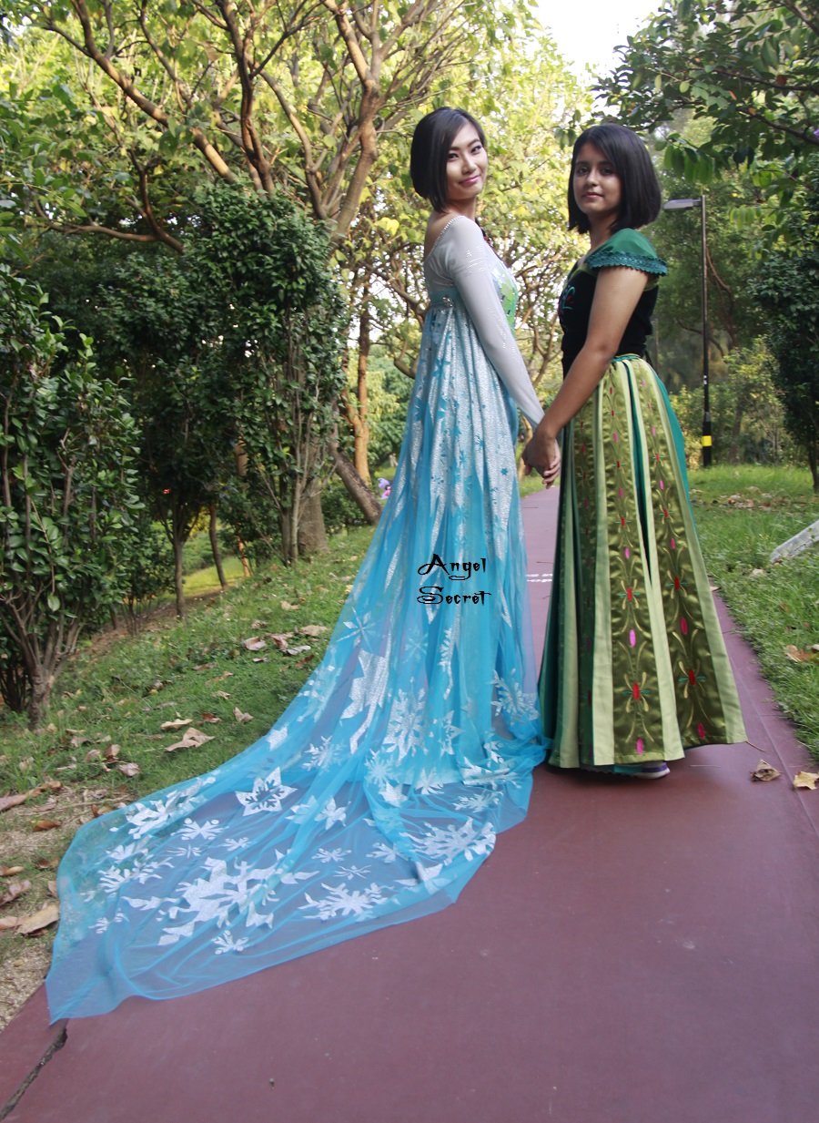 J889 Frozen Snow Queen Elsa Cosplay Costume iridescent bodice with long cape